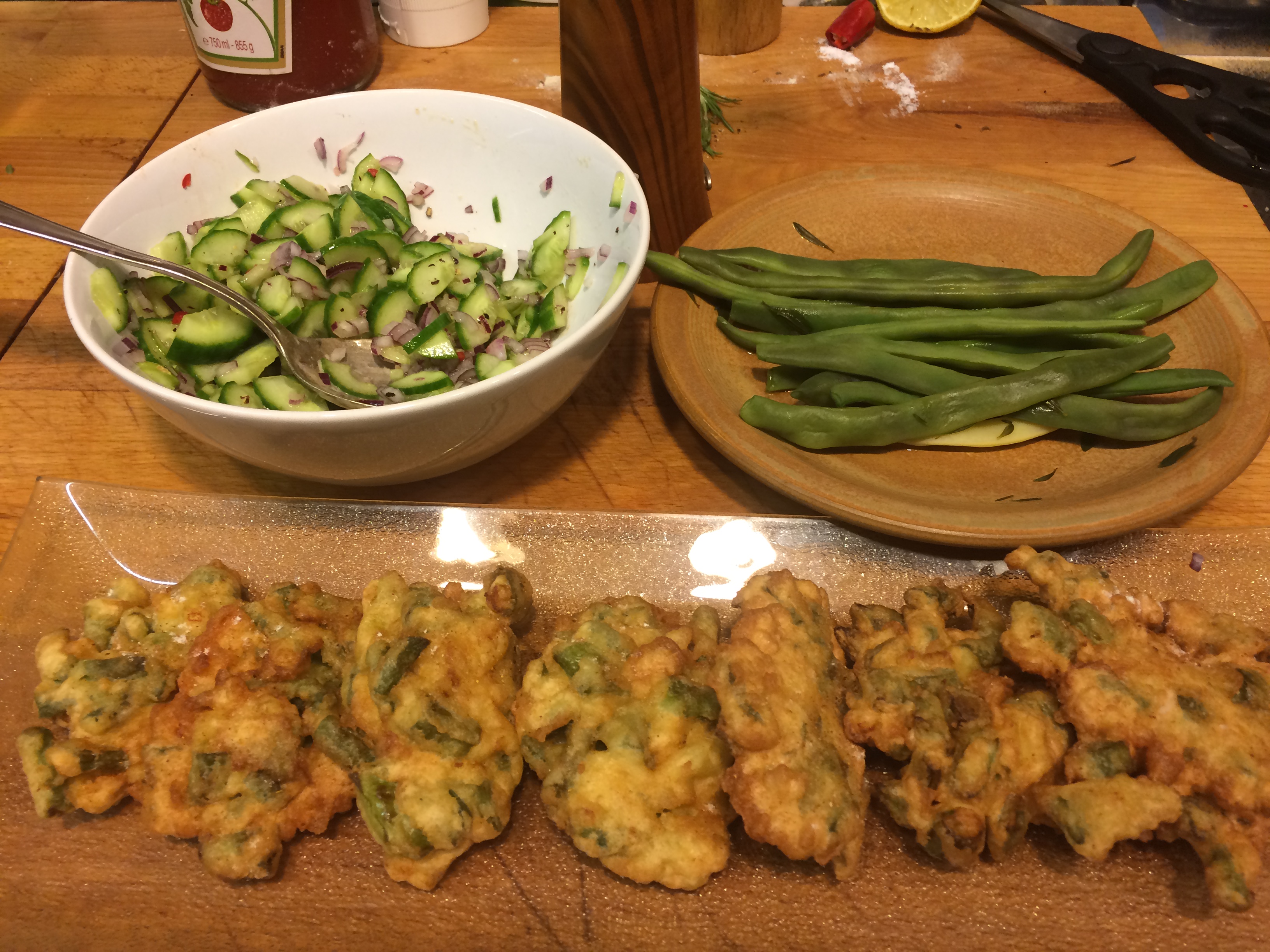 In meinem Garten habe ich Bohnen angepflanzt. Herrlich! Immer wenn ich hier bin, kann ich Bohnen ernten. Aber gottseidank nie so viel, dass sie uns aus den Ohren raus wachsen. Immer grad soviel, dass ich was Neues ausprobieren kann.