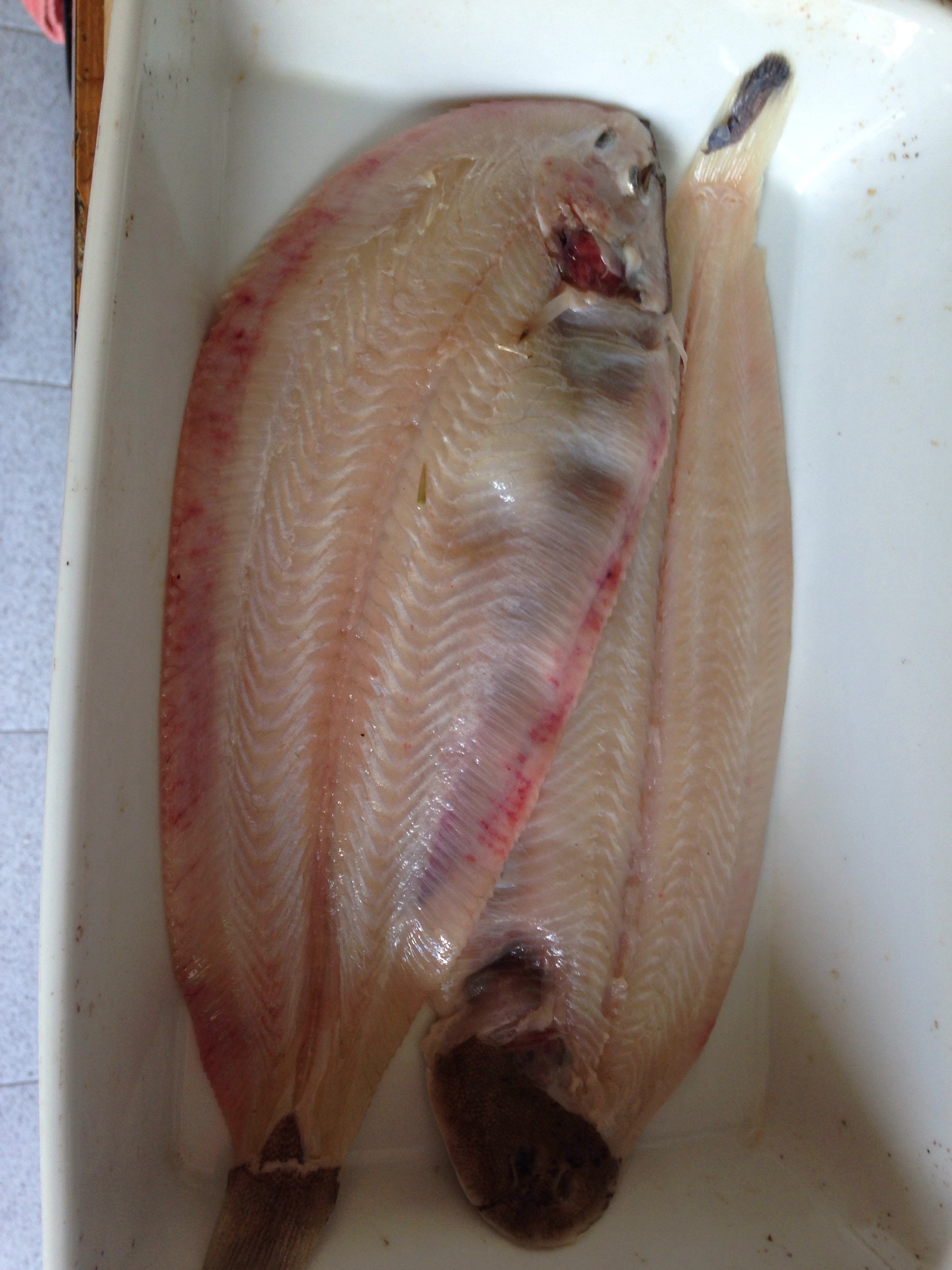 Heute haben wir bei unserem Fischhändler in Italien frische Seezungen bekommen. Ganze Seezungen habe ich noch nie gemacht. Aber ich habe ja hier in Italien mein schlaues Buch, indem steht, wie man diverse Fische behandelt. Also Italiener schneiden mit der Schere den Flossensaum ab, machen an der Schwanzflosse einen Querschnitt und ziehen die Haut ab. Von beiden Seiten. Gesagt – getan. Dann werden die Seezungen in eine Schale gelegt, mit etwas Milch begossen und kühl gestellt. Raffinös….