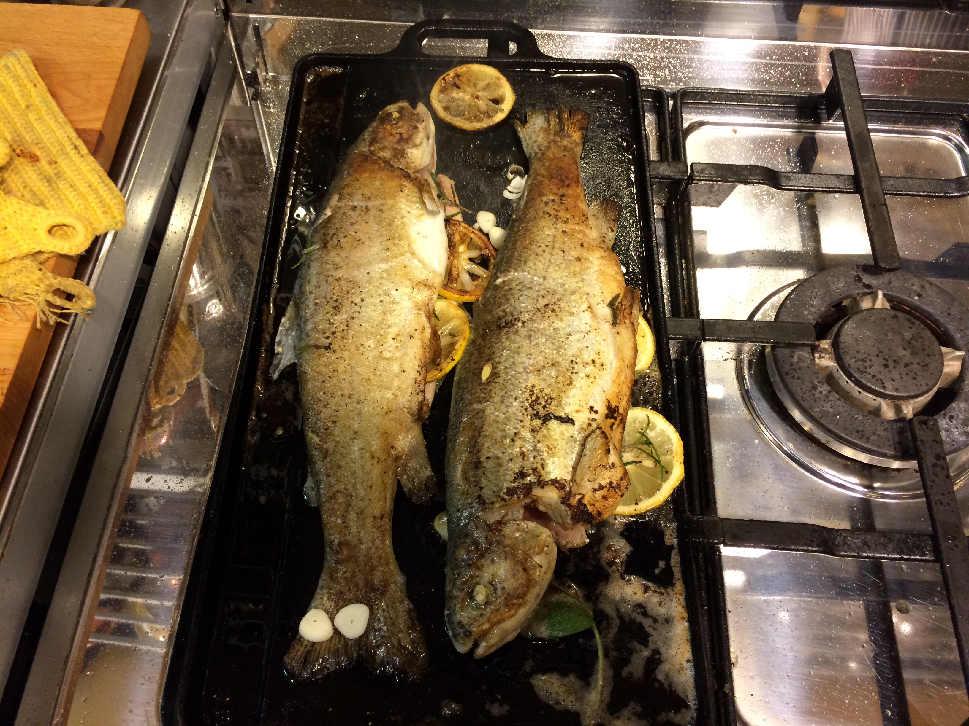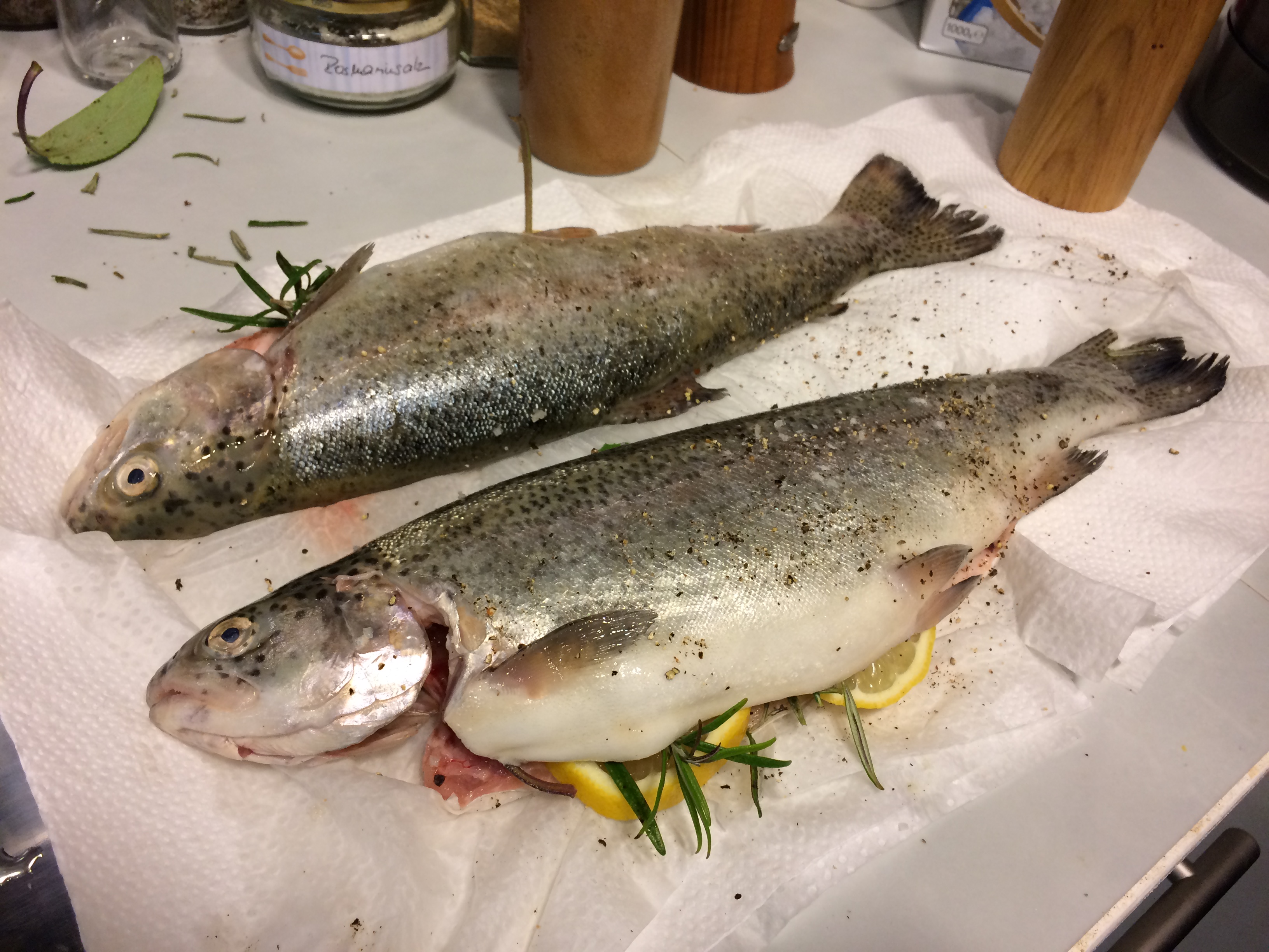 Wir haben mal wieder bei unserem Fischdealer in Österreich vorbeigeschaut. Markus wollte einen ganzen Fisch. Auf dem Markt im Base Camp gibt es normalerweise nur Filets, denn das Volk dort kann mit Gräten nicht umgehen. Aber so ein Fisch auf der Grillplatte ist halt was ganz anderes, als so ein Stück Fleisch, das nur die Form mit einem Fisch gemeinsam hat, oder auch nicht…