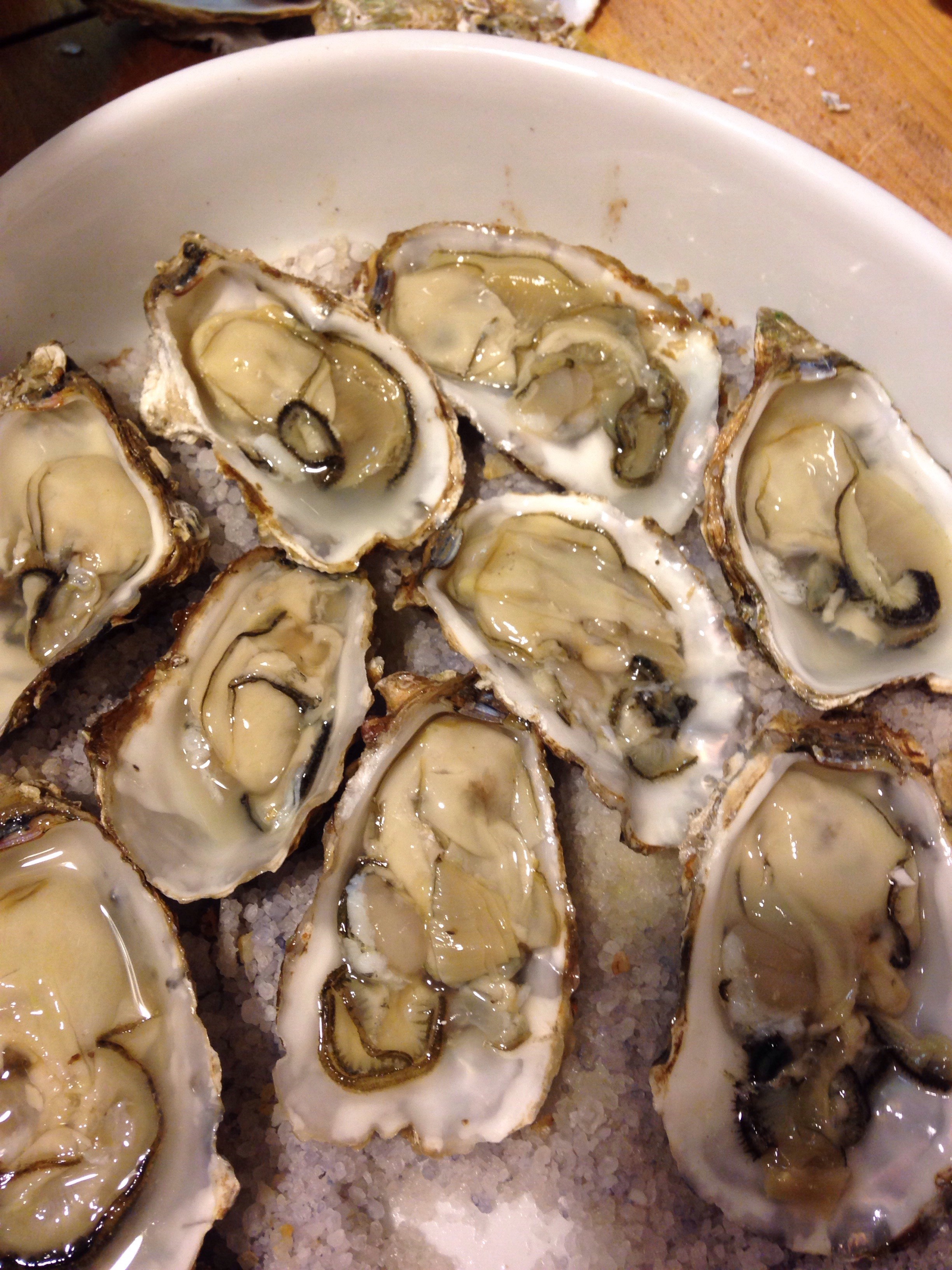 Eins dicke Schicht grobes Meersalz in eine Gratinform geben und die Austern darin platzieren, dass sie nicht umkippen. Im vorgeheizten Backofen bei 200° gratinieren, bis eine schöne Kruste entsteht. Mit Weissbrot und Prosecco, Sekt, Cremant oder was auch immer, servieren.