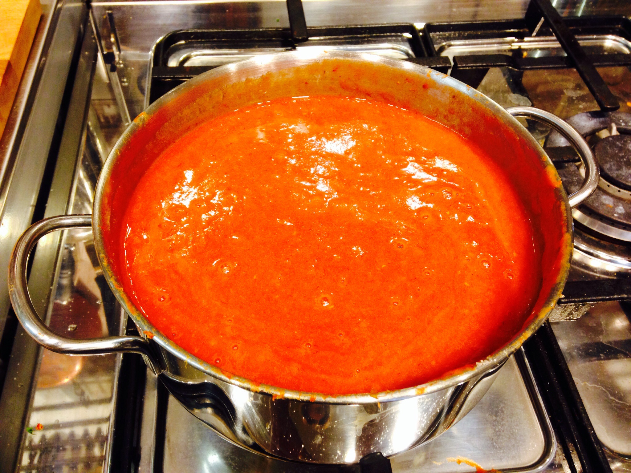 Die Hagebutten gut waschen, die Stielansätze und Blütenreste wegschneiden. In einen großen Topf geben und knapp mit Wasser bedeckt zum Kochen bringen. Kochen, bis die Hagebutten weich sind. Dann durch die flotte Lotte drehen ( Passe – vite oder Passiermühle oder wie das Ding heißt…). Herauskommt eine quitscheorangene Creme. Abwiegen und die Hälfte vom Gewicht in Zucker nehmen. Mit einer guten Prise Salz und etwas gemahlener Vanille würzen und mit dem Zucker aufkochen. In kleine Weckgläser füllen, Gummiringe und Deckel drauf, und mit Klammern verschließen. Bei 90° etwa 30 Minuten einkochen.