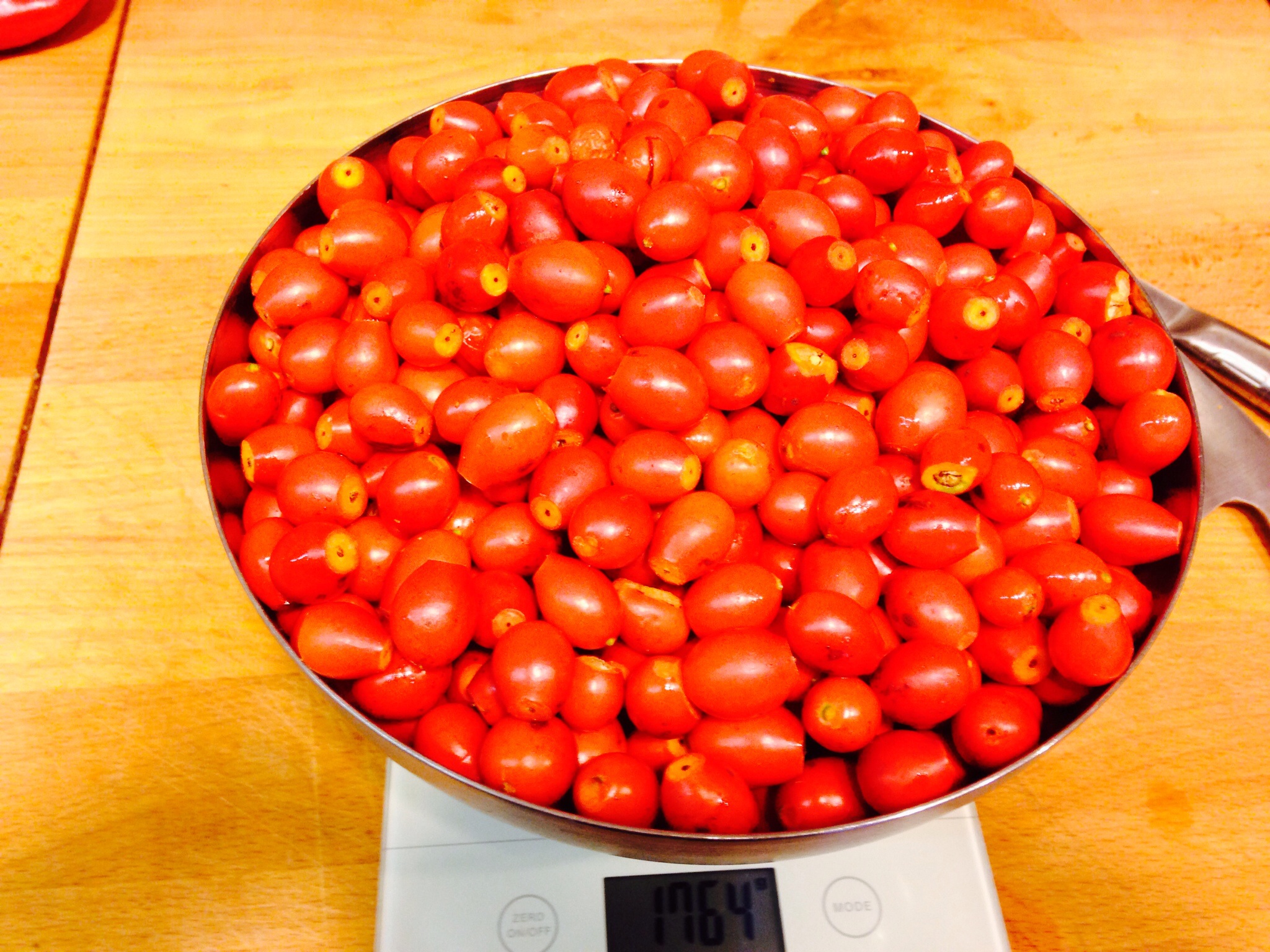 Dieses Mal habe ich mich in unserem direkten Umfeld umgeschaut, und habe festgestellt, dass da ja Unmengen von Beeren wachsen. Also habe ich, googel sei Dank, herausgefunden, dass viele davon essbar sind. Ich hab Schlehen gefunden, Kornelkirschen, Weissdorn und Hagebutten. Haselnüsse und Walnüsse nicht zu vergessen. Da hat meine Sammelwut wieder zugeschlagen. Ich kann mich erinnern, früher als Kinder, sind wir immer im Herbst Schlehen sammeln gegangen. Ich sage dazu nur – Wecker! – aber das ist eine andere Geschichte. Mein Vater hat daraus Schlehenwein gemacht. Also Schlehenwein brauche ich nicht unbedingt, obwohl ich das Gärzubehör noch habe…. Vielleicht nächstes Jahr. Ich habe Kornelkirschengelee gekocht, passt super zu Käse, Hagebuttenmark – schmeckt oberlecker auf Zopfbrot. Schlehen und Weißdorn sind noch im Gefrierschrank. Das muss ich demnächst noch verarbeiten.