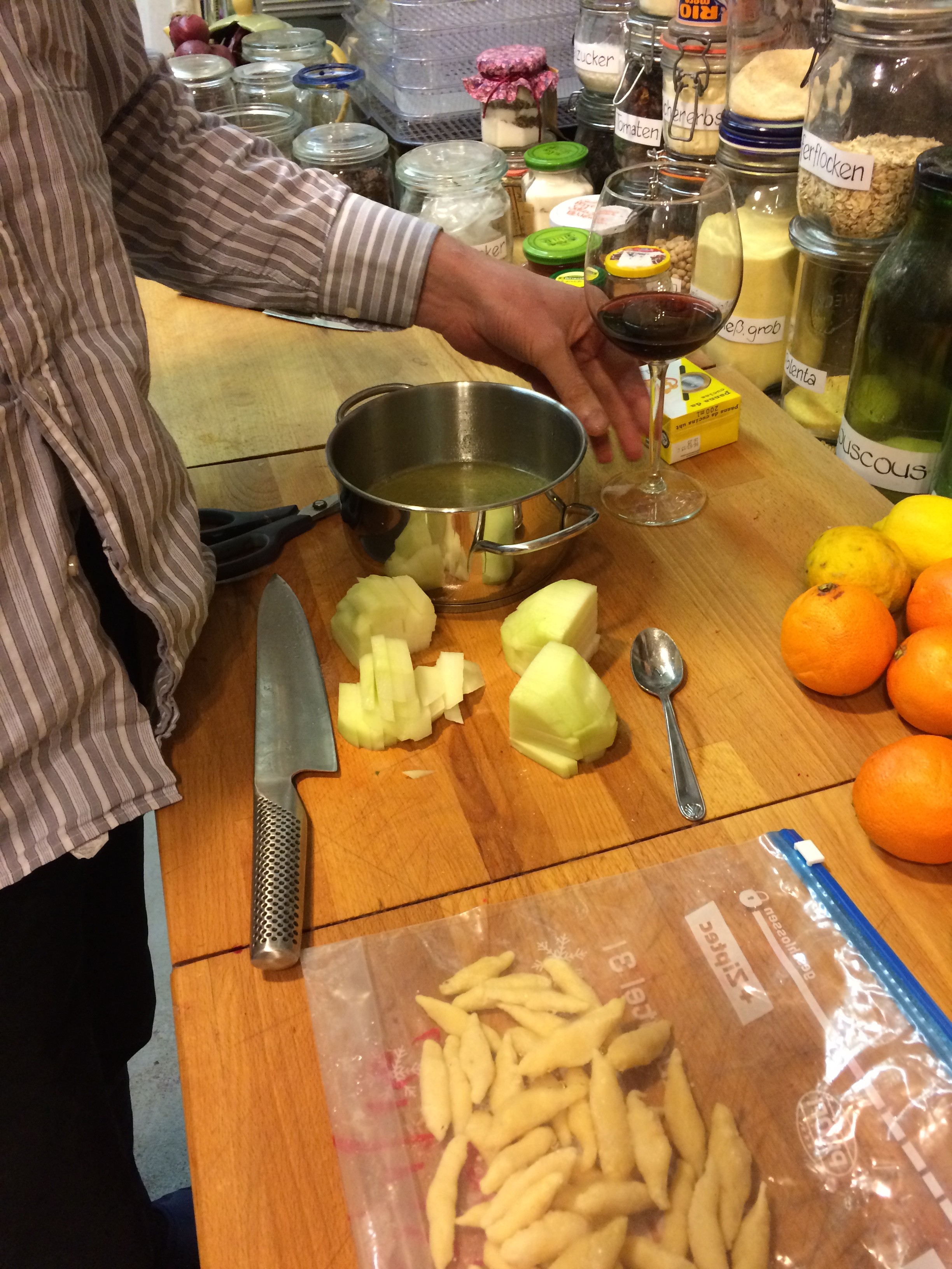 In der Zwischenzeit die Schupfnudeln anbraten und die Bohnen im Speck rösten. Alles zusammen anrichten und mit einem schönen Glas Rotwein genießen…..
