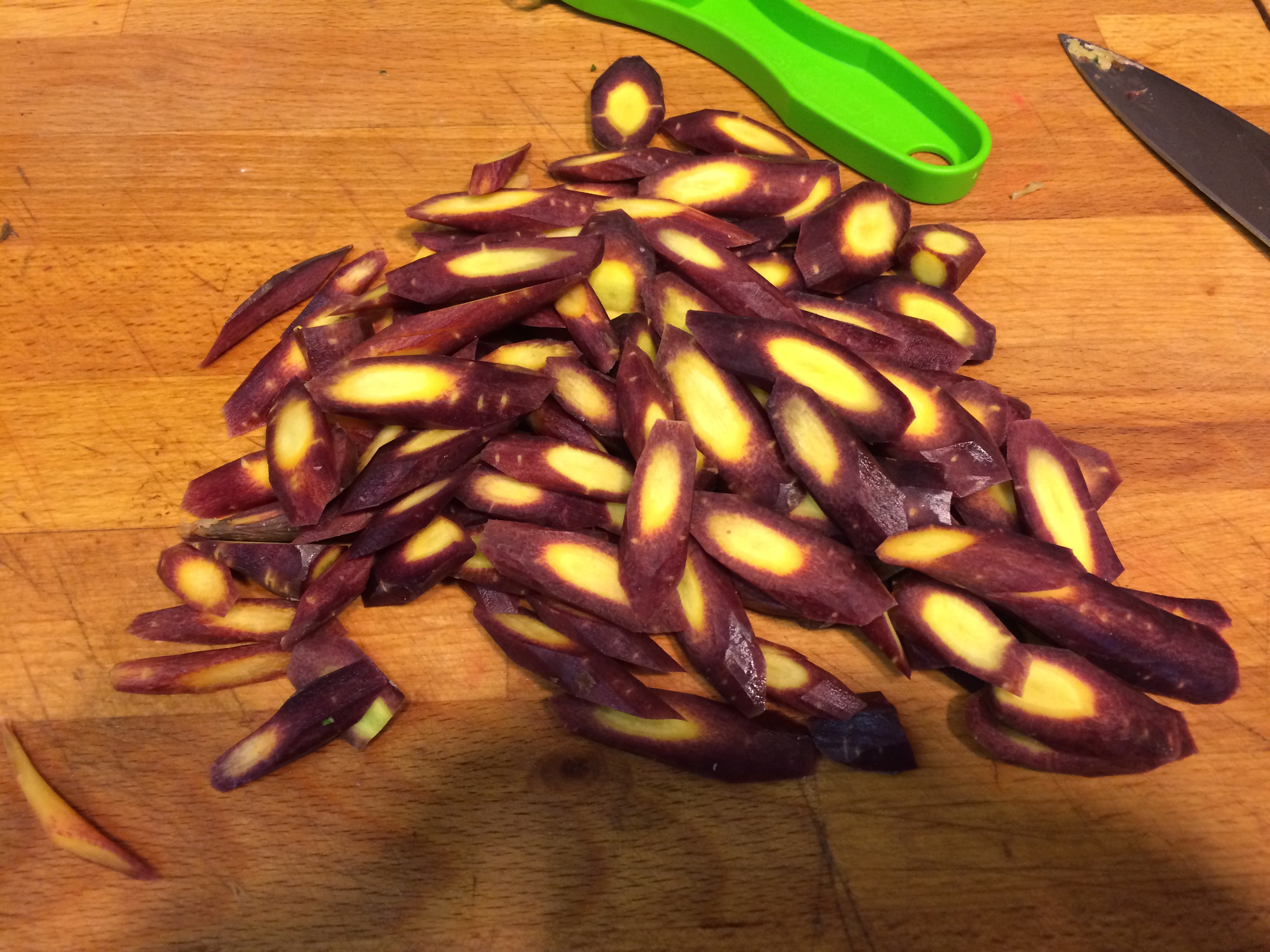 So Nata, deine blauen Möhren müssen dran glauben. Ich habe noch Nudeln und Frischkäse, das wird doch was geben. Ein Maiskolben vom Freitag ist auch noch da. Es ist ja total spannend. Ich war schon eine ganze Weile nicht mehr Einkaufen. Das letzte Mal in Italien. Da haben wir aber auch nicht Unmengen eingekauft. Gut – Du hast letzten Sonntag den Kühlschrankinhalt aus dem Base – Camp mitgebracht. Wir hatten letzten Samstag noch für einen Brunch und für unsere kleine Grillparty eingekauft, aber seither leben wir von den Vorräten. Und jeden Tag gab es etwas Spannendes. Brot habe ich selber gebacken, Salate und Bohnen wachsen im Garten, Kräuter ebenso und ansonsten haben wir alles verbraucht, was irgendwie da war.