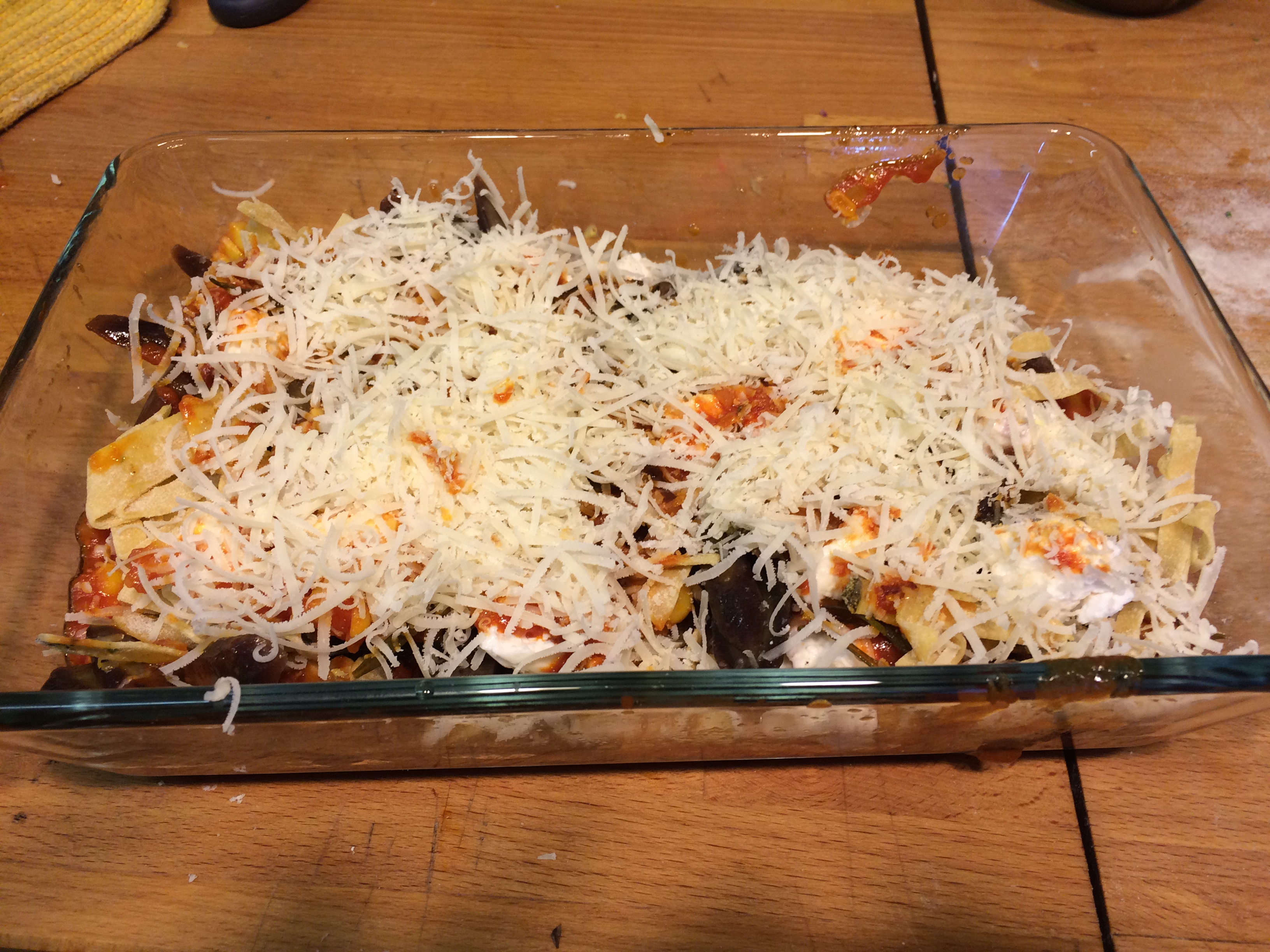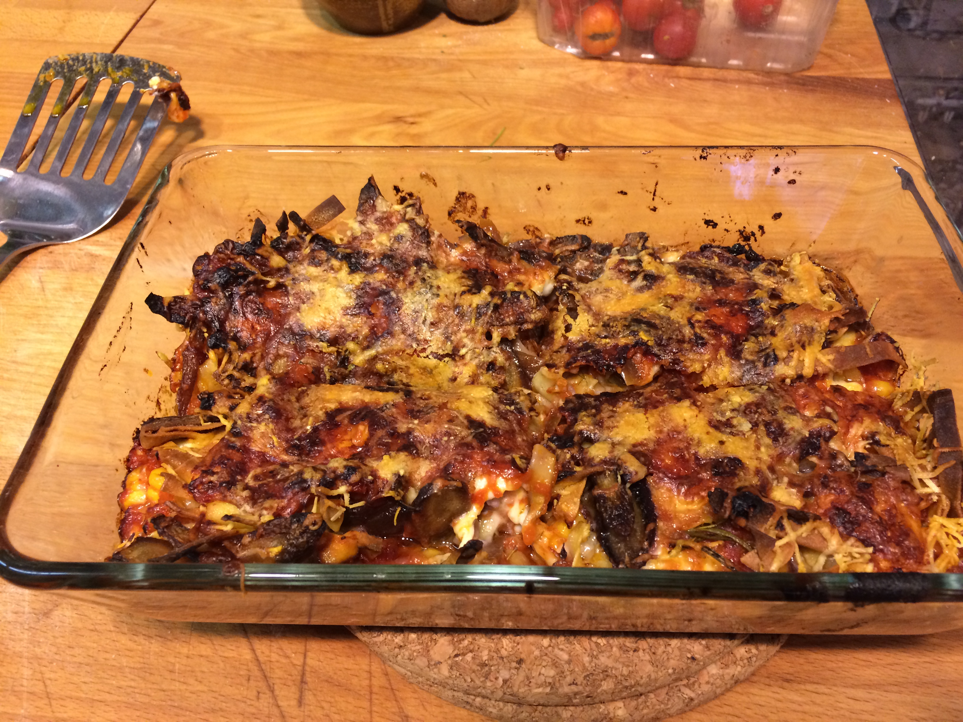 Den Backofen auf 180° vorheizen und den Gratin einschieben. 30 Minuten backen.