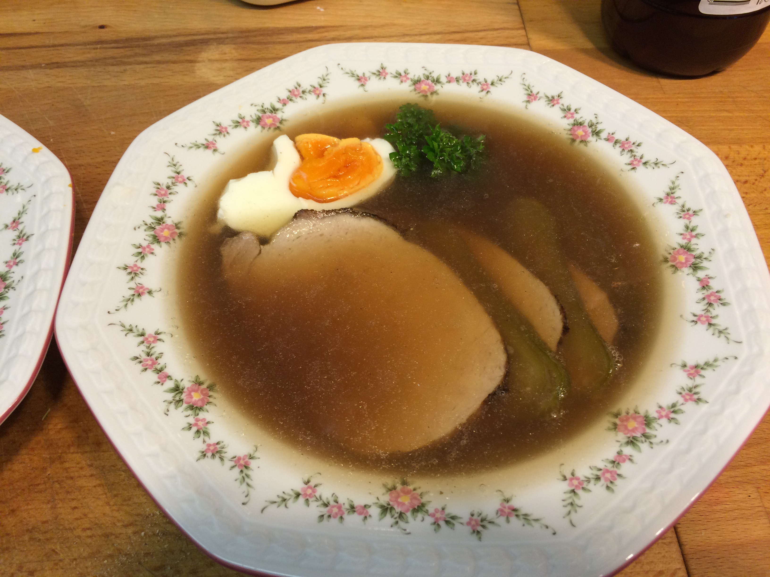 Also, wenn wir schon bayrisches Wochenende haben, dann gibt’s auch eine Tellersülze nach altem Rezept.